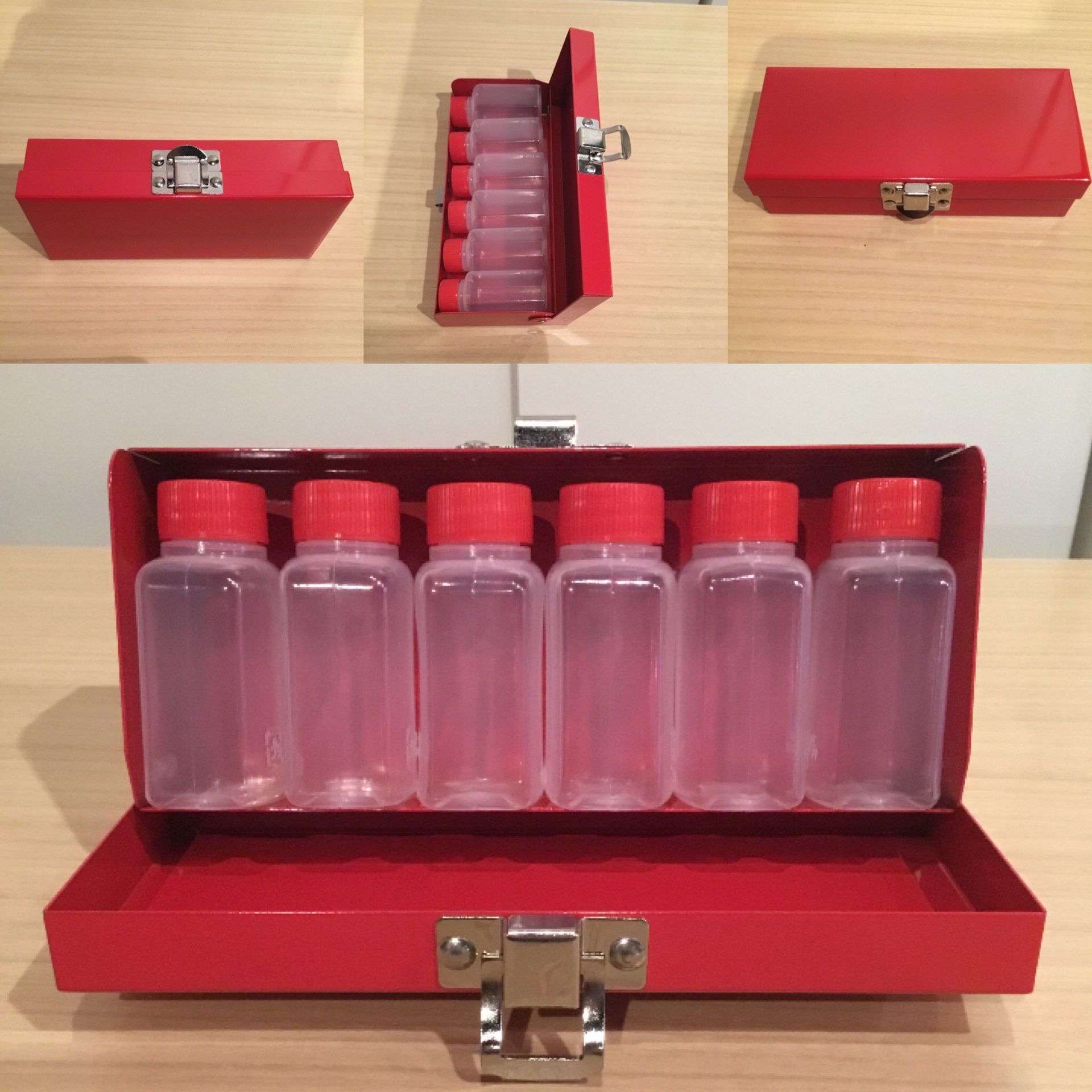 その決め手となる調味料をスマートに持ち運べる丈夫なメタルケースと基本のスパイス(黒瀬のスパイス、岩塩、ブラックペッパー、七味唐辛子、カレーパウダー、粉末マヨネーズ)にお好みの調味料が入れられる容器と詰替えに便利な漏斗のセットです